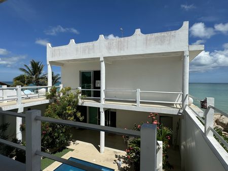 Presentamos una magnífica casa frente a la playa, una inversión perfecta ya que cuenta con dos departamentos perfectos para vivir o alquilar. Relájate en la piscina con vista al mar y disfruta de la piscina adicional en la zona de los departamentos.