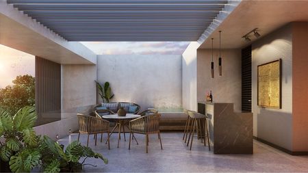Diseñada especialmente para personas que buscan un retiro asegurado en una zona de plusvalía y alto rendimiento en el ámbito de inversiones inmobiliarias, al igual que confort y exclusividad para aquellos que deciden vivir en ella. Lleva a su servicio una recepción con vigilancia las 24 horas del día, un estacionamiento privado y acceso por elevador que les permite conservar la seguridad y privacidad estimada a los huéspedes e invitados. La vida social se encuentra estimulada con una terraza bar y 3 locales comerciales independientes en la planta baja.